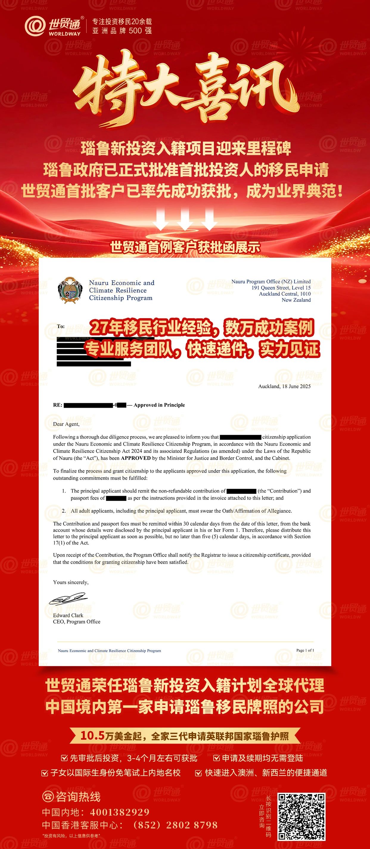 此外,若您想拥有第二本护照,瑙鲁、圣卢西亚等英联邦国家投资入籍项目是不错的选择,可全家直获英联邦公民身份,享英联邦国家公民待遇。