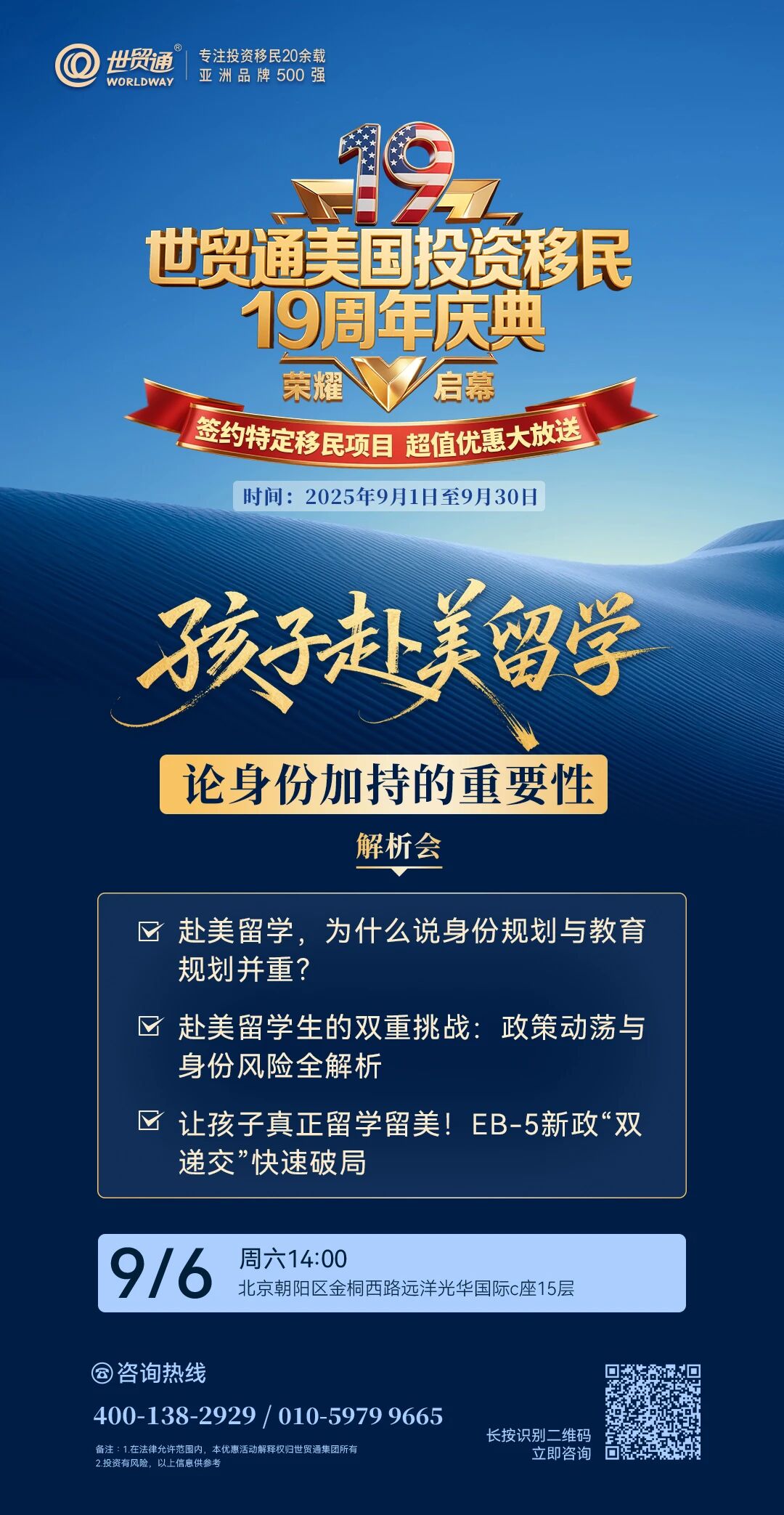孩子赴美留学,论身份加持的重要性解析会创建时间:2025-09-06 世贸通 981孩子赴美留学,论身份加持的重要性解析会 详询咨询 中国内地: 400-138-2929 中国香港客服中心: (852)2802-8798 投资有风险,以上信息供参考