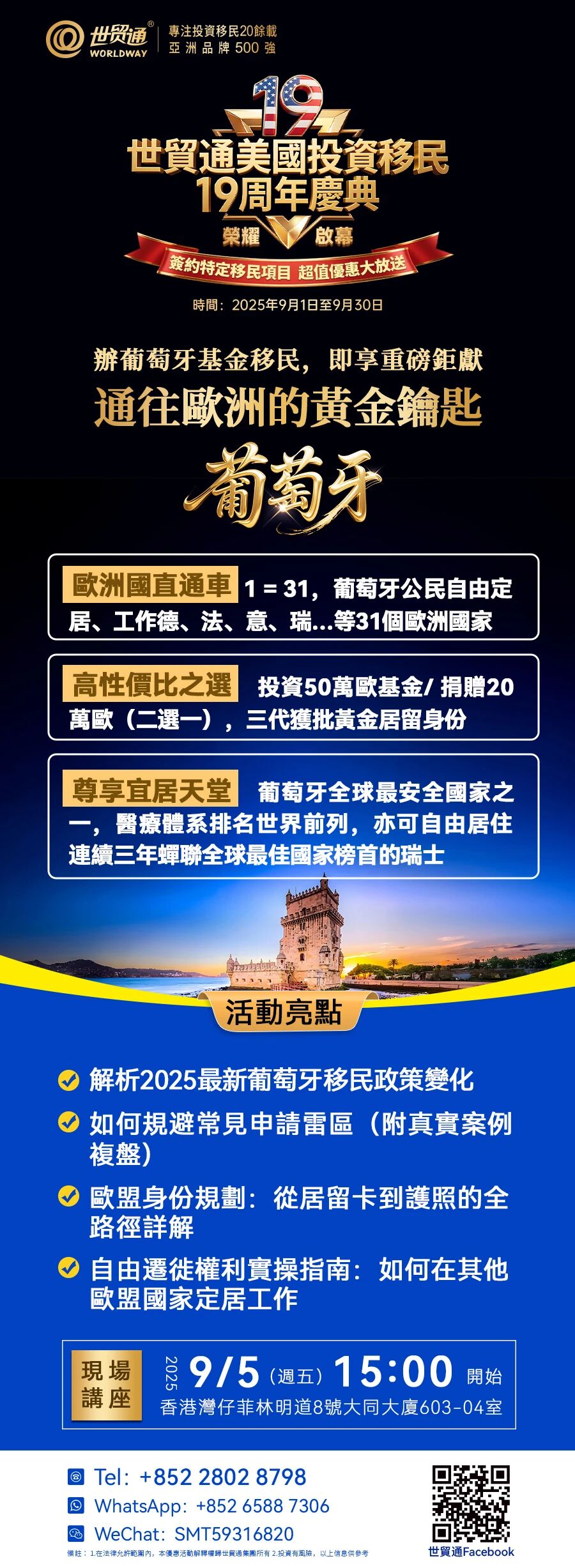通往歐洲的黄金鑰匙葡萄牙2025年9月5日• 世贸通• 734 阅读 通往歐洲的黄金鑰匙葡萄牙 详询咨询 中国内地: 400-138-2929中国香港客服中心: (852)2802-8798 投资有风险,以上信息供参考 上一篇注意!美国移民申请缴费方式巨变下一篇美国学生签证连环变局下,EB-5成留美最优途径解析会