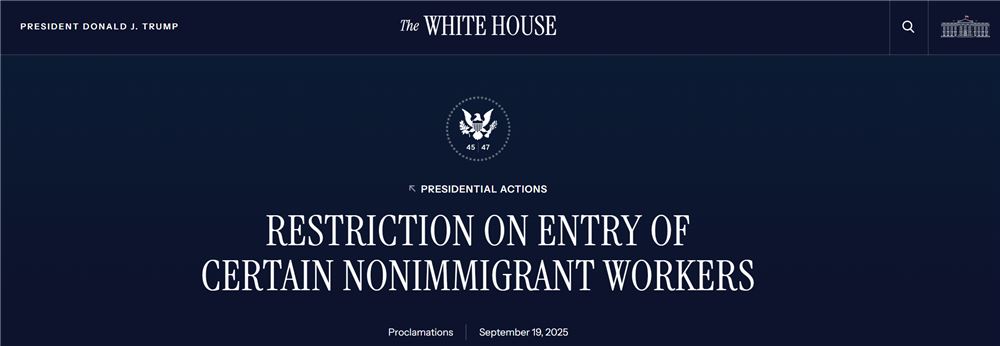 当地时间2025年9月19日,白宫传来重磅消息:特朗普签署公告,对H-1B工作签证新增高达10万美元申请费!