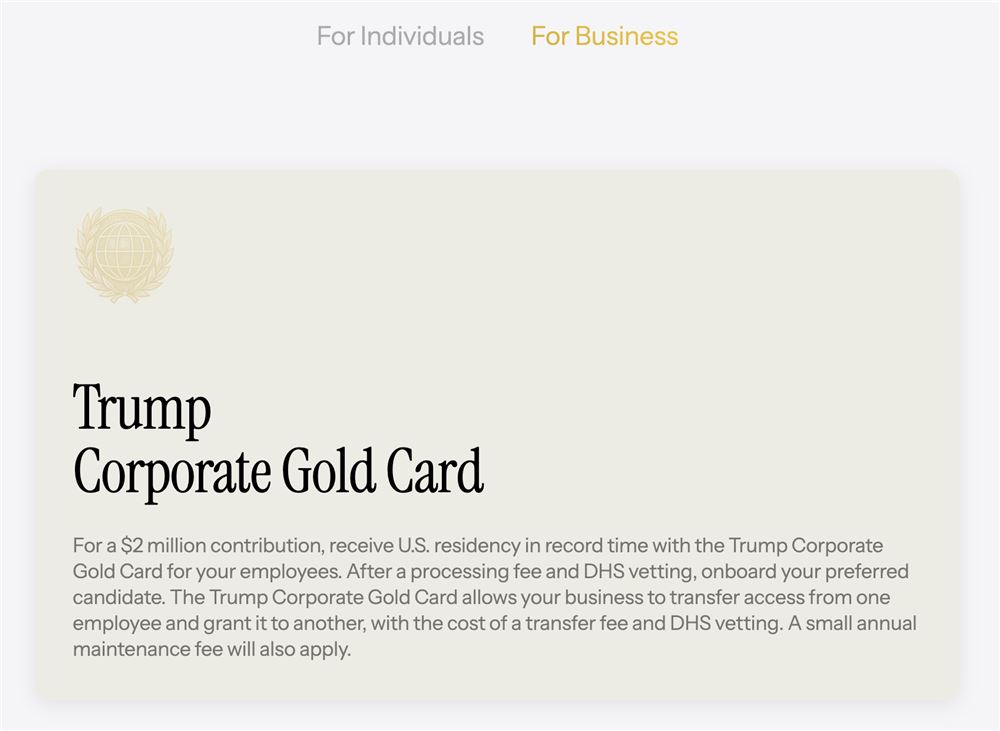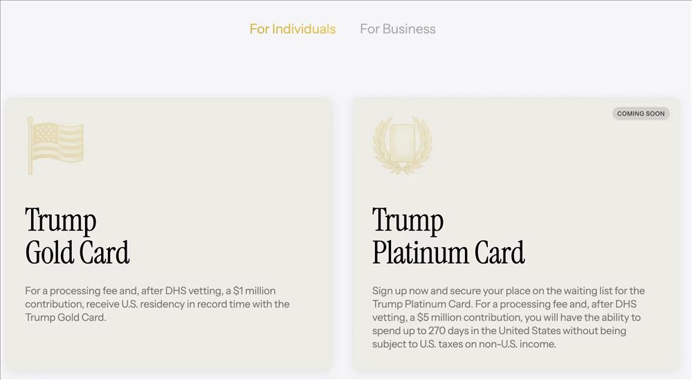 2025年9月19日,美国总统特朗普签署一项名为“金卡”计划的行政令,称其将为“具有非凡能力并愿意支持美国的外国人”开辟一条新的签证通道。该计划分为三个类别:个人出资100万美元可获得普通绿卡身份;企业为员工办理需出资200万美元;另设500万美元级别的“白金卡”,持…