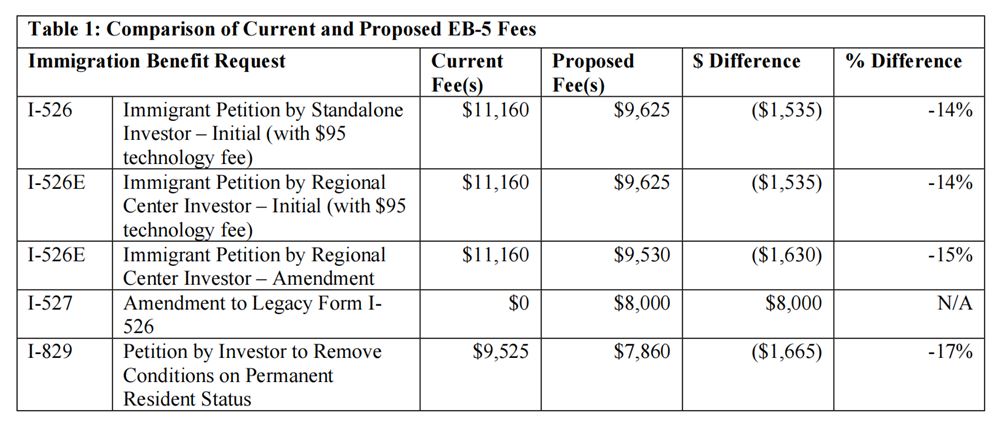 • I-526/I-526E:从11,160美元下降至9,625美元,降幅14%;