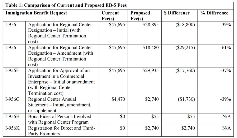 • I-956(区域中心初始指定):从47,695美元降至28,895美元,降幅39%;