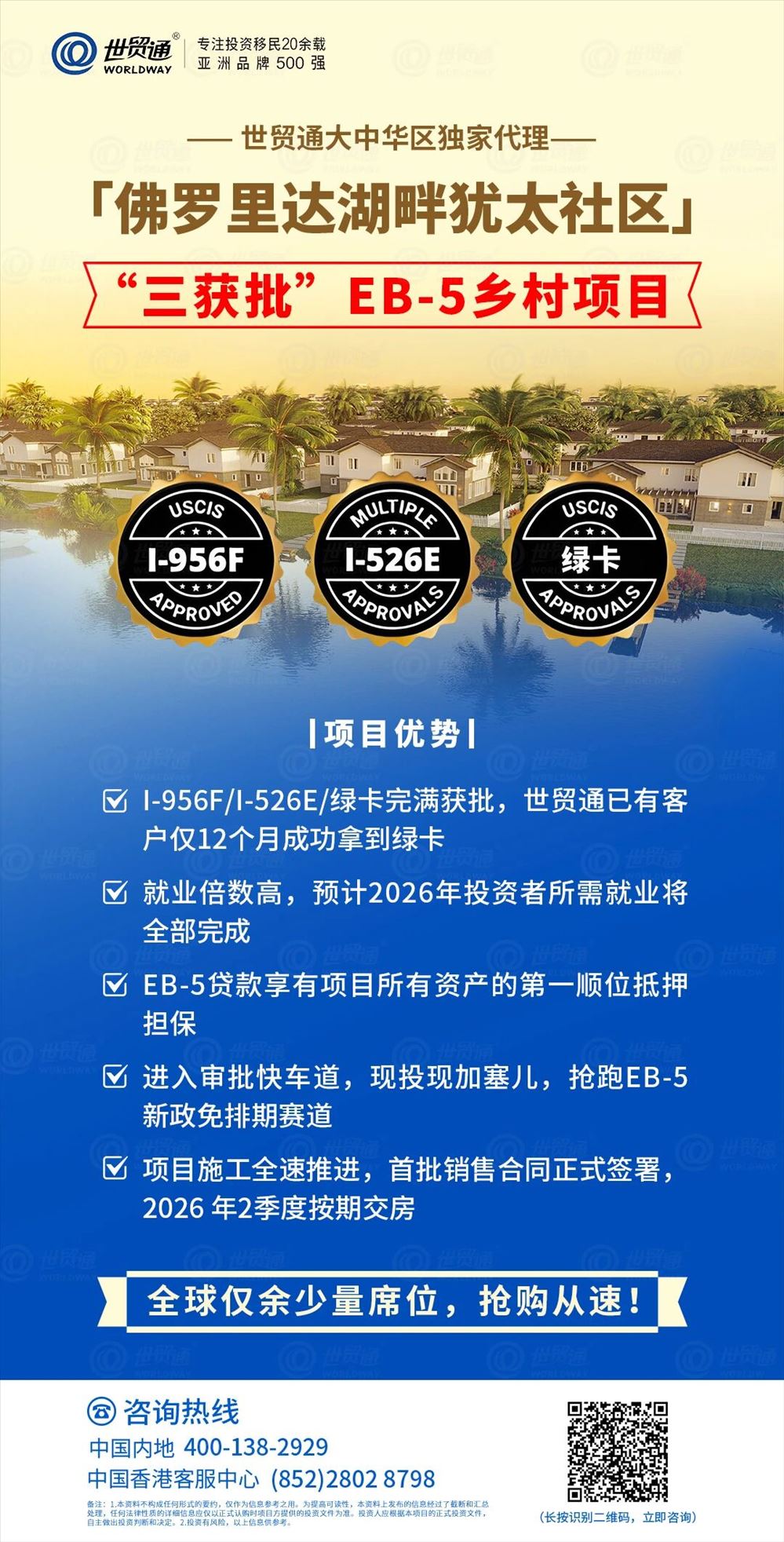 在全球EB-5项目竞争日趋激烈、优质名额日益稀缺的背景下,世贸通集团凭借强大的品牌实力与专业服务优势,为投资人提供更高确定性的选择。