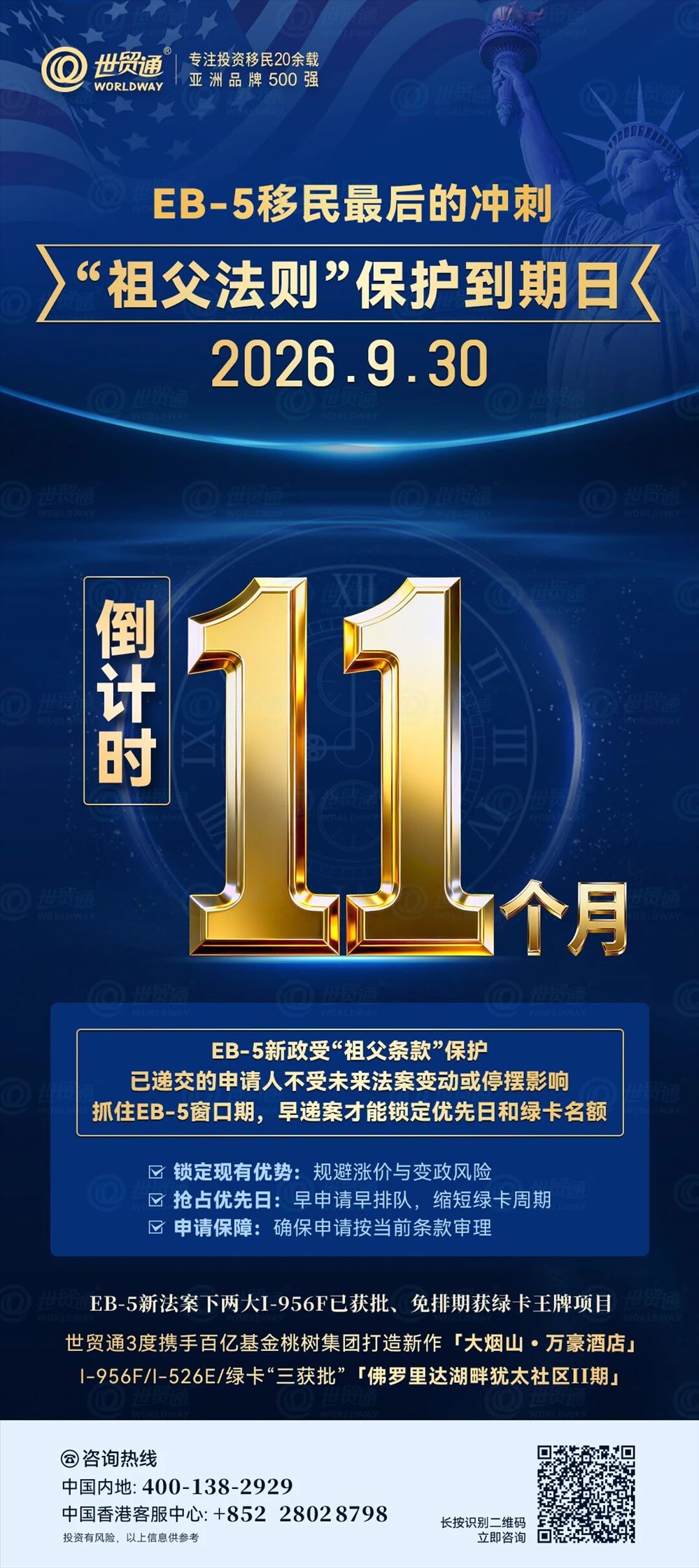 现在正是把握确定性项目、抢占签证名额的最佳时机。错过当下,可能意味着再等数年。