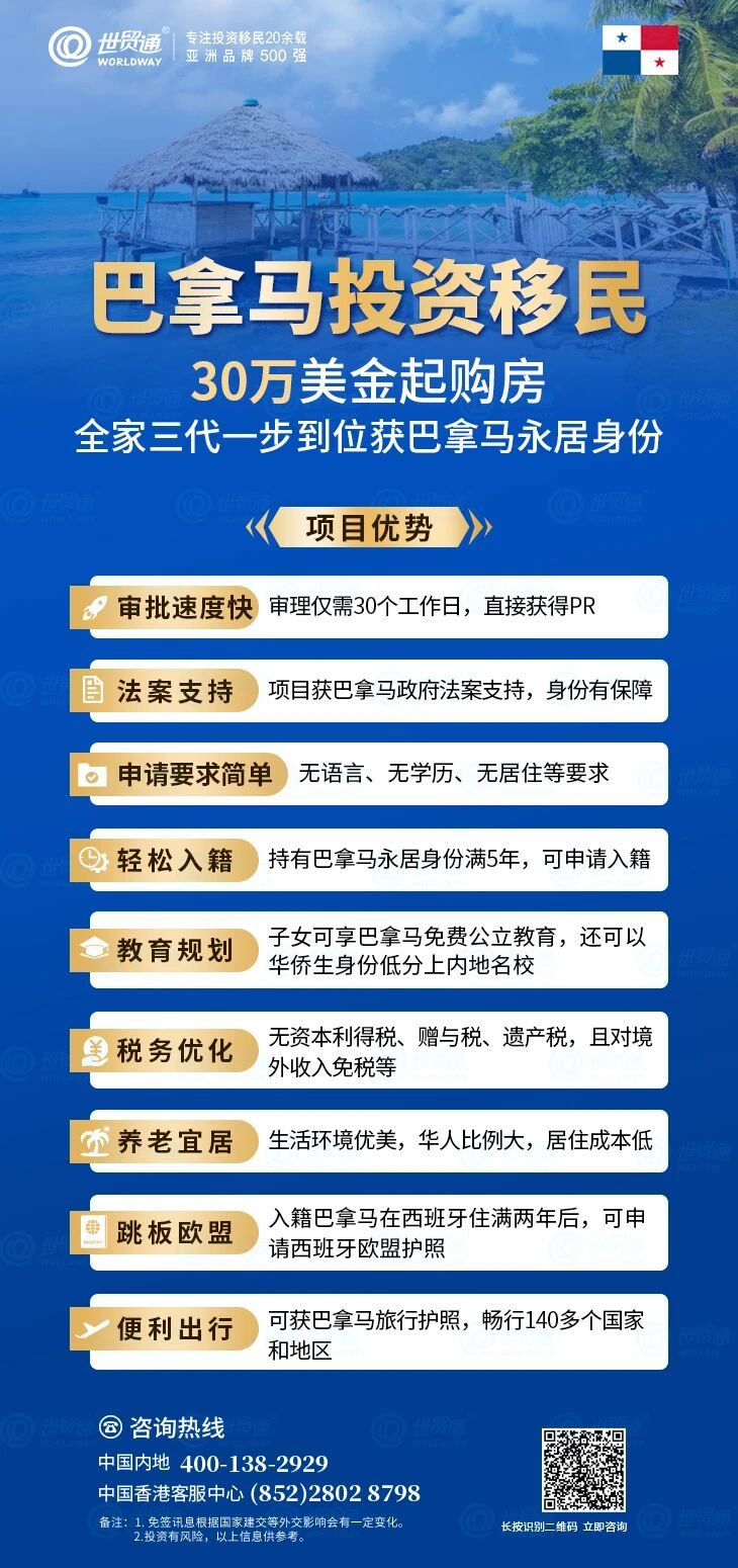• 巴拿马旅行护照:含金量高,可免签包括欧盟申根区、英国、日本、新加坡等在内的140多个国家和地区,为投资者带来真正意义上的国际出行自由。