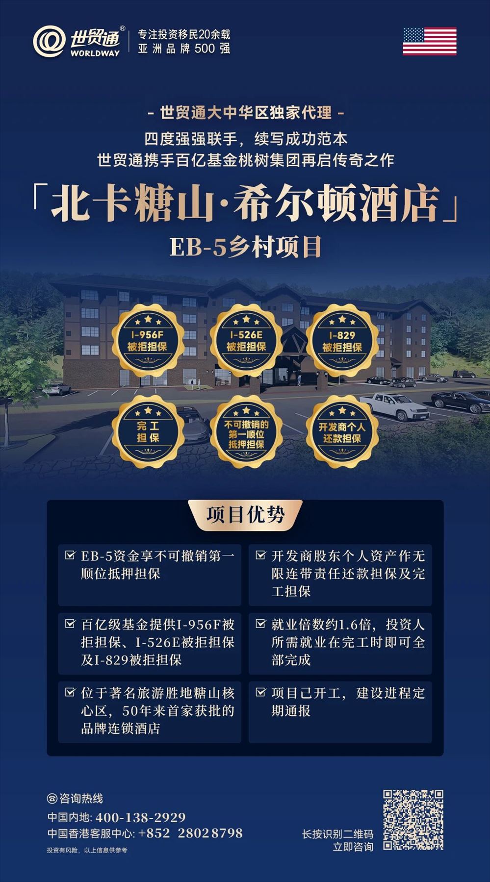 目前正是投资人通过EB-5实现美国移民规划的黄金窗口期。世贸通手握3大优质EB-5乡村项目,助力投资者稳妥、无排期、高效地实现美国身份规划,快速踏上美国新生活之路。全球名额有限,先到先得,机遇不容错过!