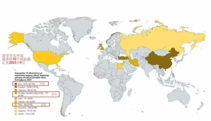 2025年希腊移民大数据新鲜出炉!过去一年(2024年9月-2025年9月),希腊黄金签证项目共计收到12291份永居申请。其中,中国籍申请人以47.9%的绝对优势稳居第一,几乎占据了一半的总申请量,远超其他国家!英国和美国申请人分别以4.0%和2.9%的占比位列第四和第七。