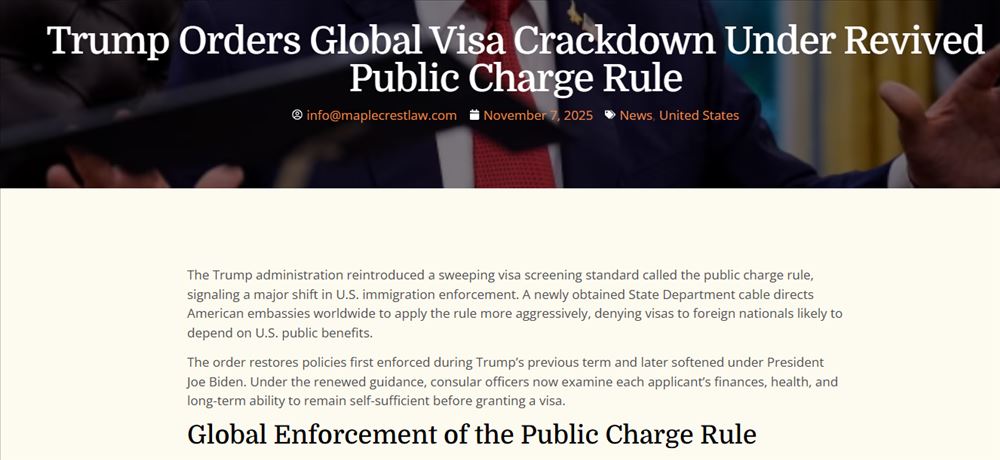 近日,“公共负担2.0”成了美国移民圈的热议话题。据报道,美国国务院通过电报下令给全球使领馆,复并扩大对签证申请人实施的“公共负担”(Public Charge)审查制度。这一消息让不少有移民计划的家庭再次紧张起来。