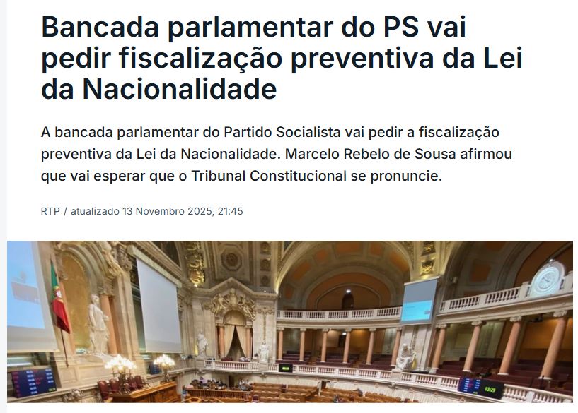 近日,葡萄牙政坛聚焦《国籍法》修正案进程。社会党(PS)议会党团正式向宪法法院提请对该法案进行预防性合宪性审查。根据葡萄牙宪法程序,审查期间,整部法律暂停,无法由总统签署、公布或生效。