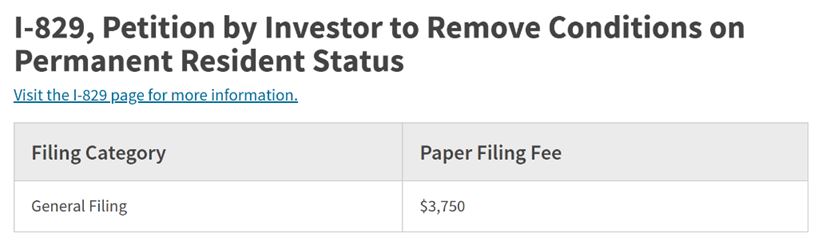 • I-526/E的申请费用由11,160美元恢复至3,675美元;