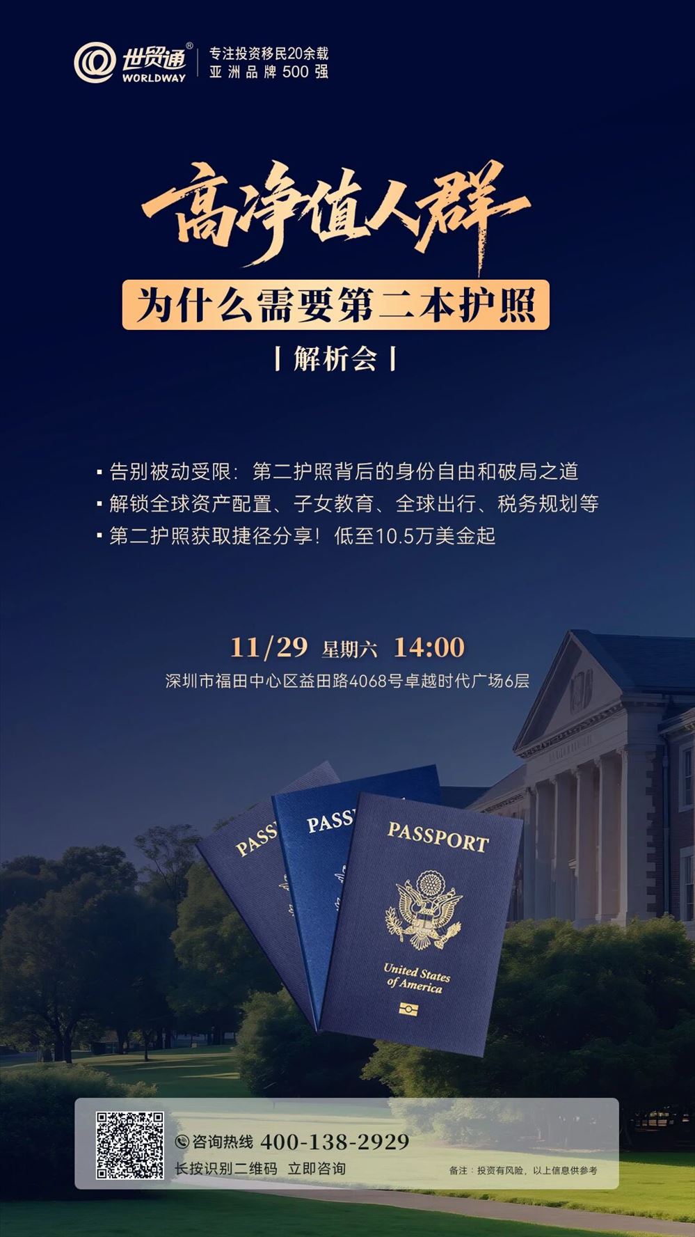高净值人群为什么需要第二本护照2025年11月29日• 世贸通移民• 970 阅读 高净值人群为什么需要第二本护照 详询咨询 中国内地: 400-138-2929中国香港客服中心: (852)2802-8798 投资有风险,以上信息供参考 上一篇美国移民热门方式对比解析会下一篇美国教育·留学·移民规划说明会