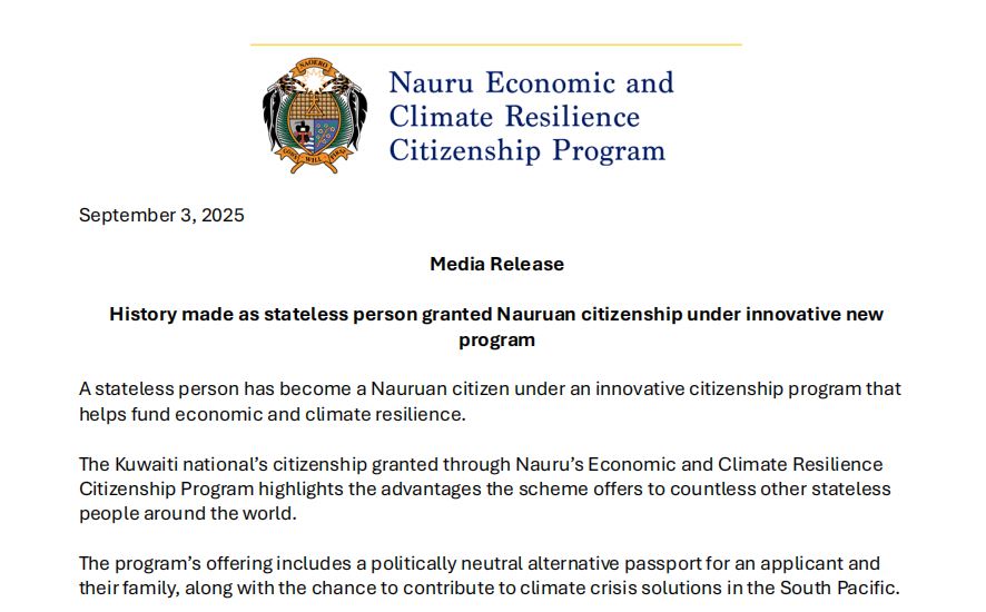 近日,该计划迎来了具有标志性意义的里程碑:一名美国公民在取得瑙鲁身份后,成为首位赴瑙鲁访问的投资人,并以瑙鲁护照往来多个国家。这一访问标志着项目在国际实践中迈出关键一步,也进一步提升了其可信度、公信力与国际认可度。