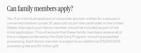 ✔ 企业金卡:200万美元捐赠/每人,1.5万美元申请费/每人,此外有1%的年度维护费和5%的转换费;