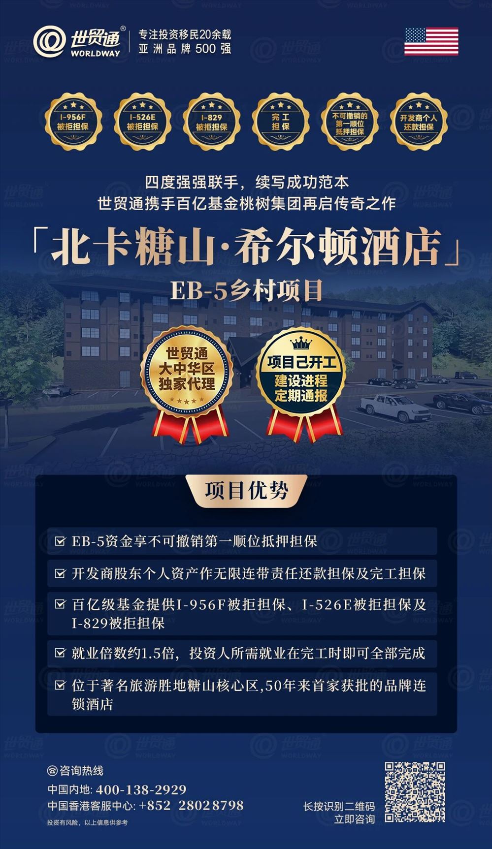 世贸通手握两大高品质EB-5乡村项目,正进一步助力投资者稳妥、无排期、高效地实现美国身份规划,快速踏上美国新生活之路。全球名额有限,席位稀缺,先到先得!