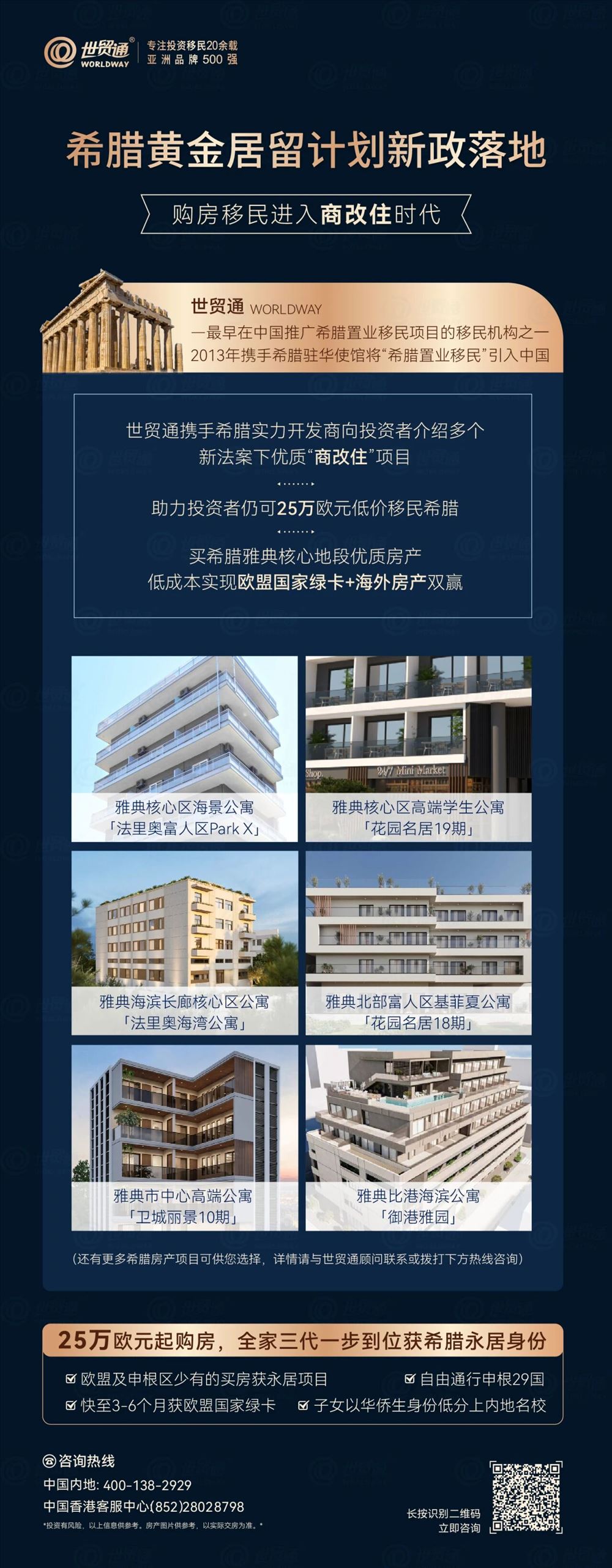 世贸通携手希腊实力开发商向投资者介绍多个优质“商改住”项目,助力您把握政策窗口期,稳步推进家庭的欧洲身份与资产布局。