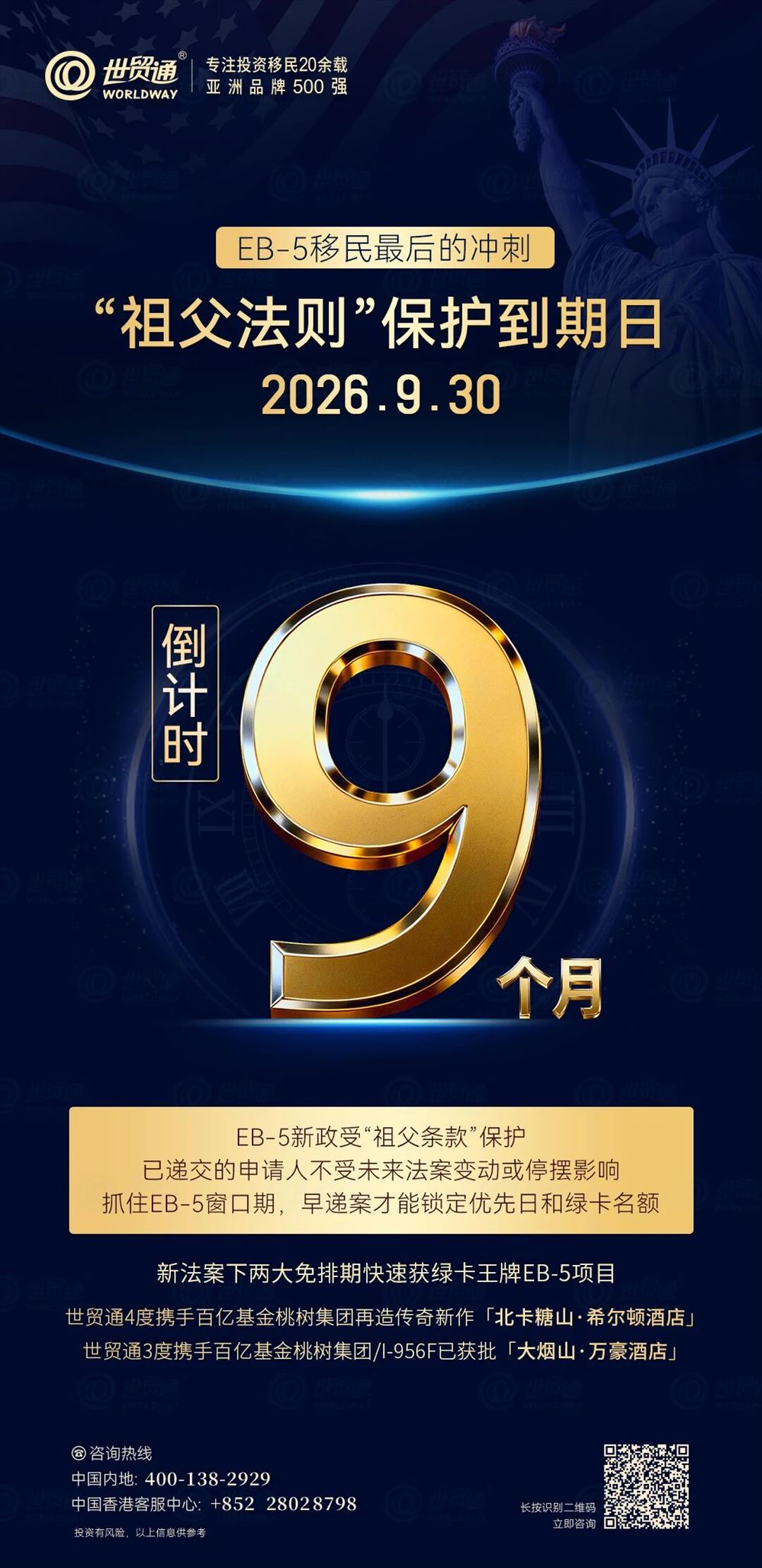 此外,EB-5投资移民依然是目前美国移民体系中最为成熟、适用人群最广的获得美国身份的路径之一。免排期,投资80万美元起,全家快速获美国绿卡。