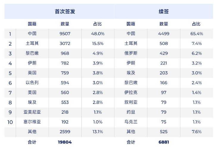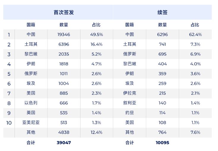 按国籍划分的黄金签证数量(主申请人)