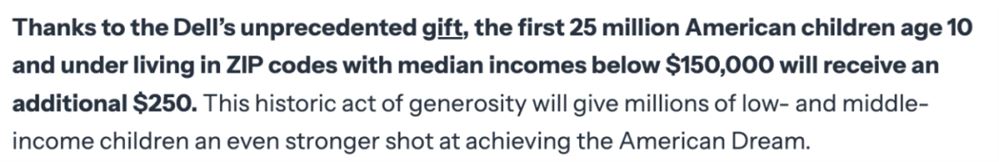 如果说政府的1000美元是“制度起点”,那么戴尔夫妇的行动,则是对这一制度的强力背书。
