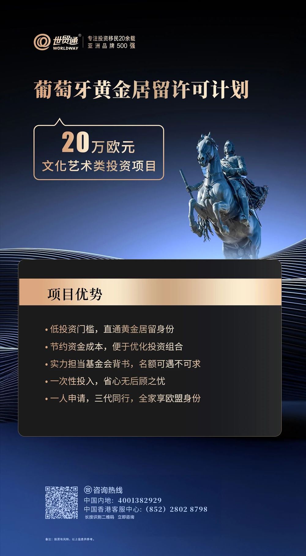 如需了解更多葡萄牙移民详情,详询中国内地:400-138-2929,中国香港客服中心:(852)2802 8798