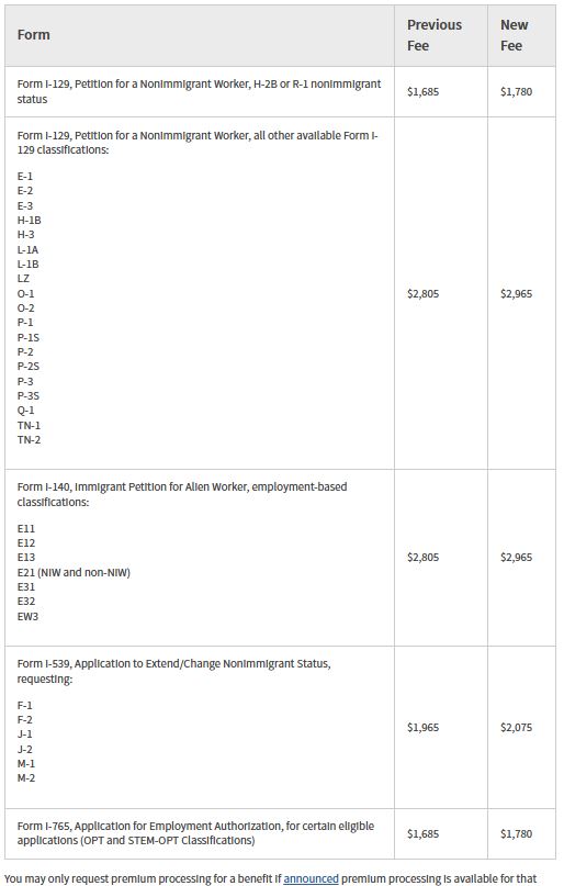 • OPT和STEM-OPT的加急费调整为1,780美元。